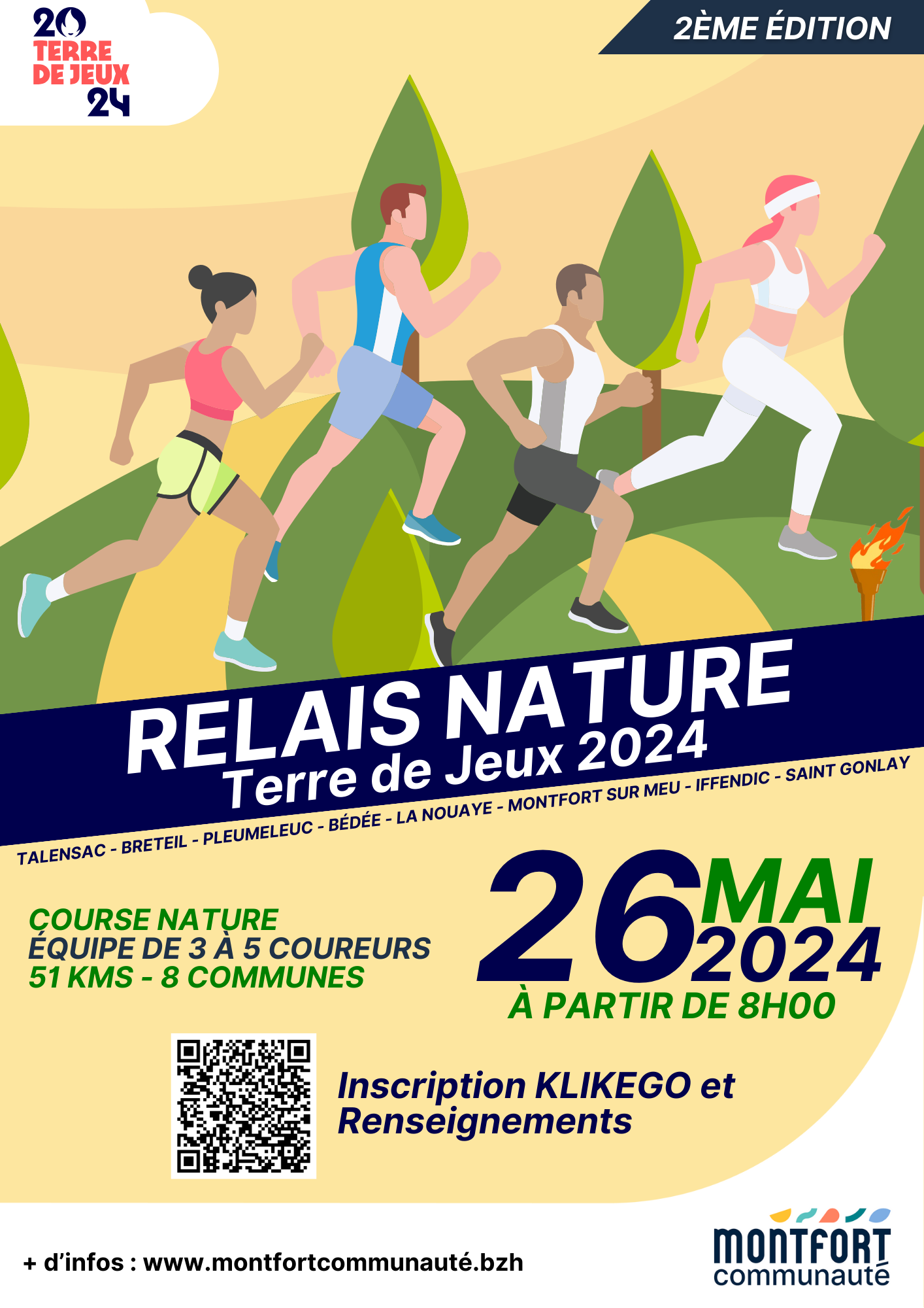 Inscription à partir du 11 MARS 2024 via ce lien Klikego : https://www.klikego.com/inscription/relais-nature-terre-de-jeux-2024/course-a-pied-running/1673062593826-2
